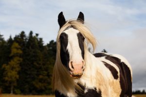 Jack war das Herzblatt von Danny und eine echt coole Socke. Er war ein total gelassener Irish Tinker und absolutes Verlasspferd. Im Gelände stapfte er ohne Wenn und Aber voraus, die unerfahreneren Pferde hängten sich gerne an seinen Schweif und lernten vom ihm. Er akzeptierte gerne auch ein Pferd am Führstrick dicht neben sich. Sein Wiegeschritt war eine Kur für jede Reiterhüfte und alle Anfänger/innen fühlten sich sofort wohl auf seinem Rücken. Danny ritt ihn besonders gerne mit Pfeil und Bogen in der Hand und das Ziel vor Augen. Gerne begrüßte Jack sie mit seinem ‚Pferdelachen‘ und zog sein Schnurrbärtchen in die Höhe um eine Karotte oder einen Apfel abzustauben. Ihm fielen immer wieder neue Wege ein, um seine Energie zu sparen und mit größter Wonne rubbelte Jack sich die üppigen Puschel – egal ob an den ausgelegten Baumstämmen oder an Koppelpfosten, Weidestangen oder Stalltoren 😉